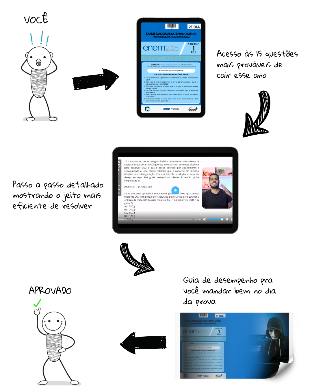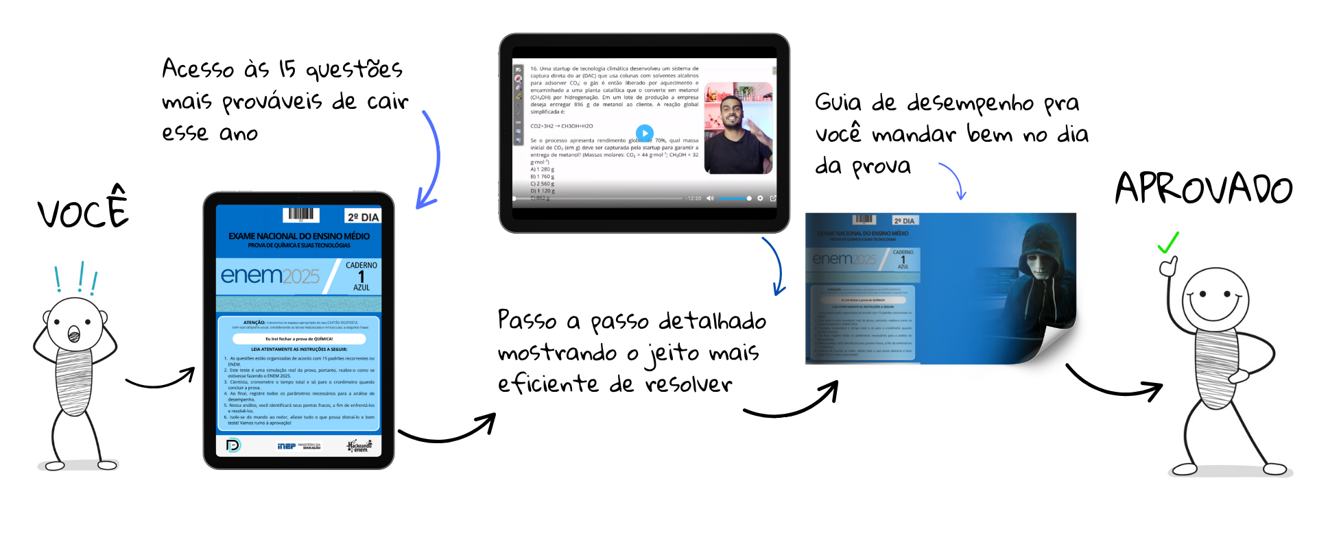 Você não receberá as questões para decorar, mas sim os raciocínios prontos para aplicar nas questões da prova e GABARITAR QUÍMICA NO ENEM!